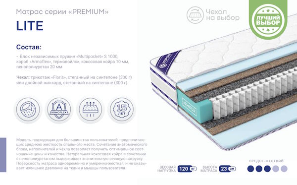 | Тип матраса | Пружинный - Multi Pocket S1000 |