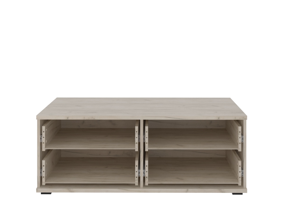 Тумба под ТВ Альянс 2 ящика 435.08 - входит в модульную гостиную Альянс. Корпус изготавливется из высококачественного ЛДСП в цвете Дуб крафт. Фасады ящиков из ДСП, где один из них выкрашиваются в четыре слоя высокоглянцевой краски в автоматизированной покрасочной камере, а другой производятся из того же материала что и корпус.  Направляющие ящиков шариковые полновыкатные. Ручки из черного прочного пластика. Ножки также из черного пластика.